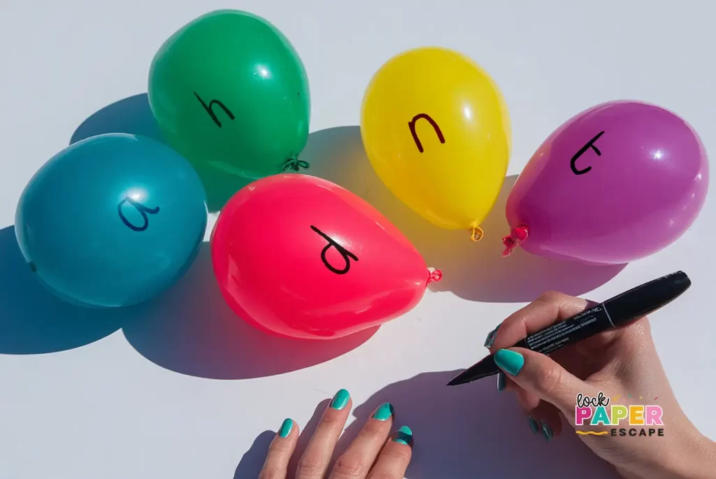 Not everyone likes the noise of popping balloons, so here is a fun alternative. Use coloured balloons to match a code or pattern found in your game. Write numbers or letters on them and players sort into the correct order to reveal a word, phrase, or number.