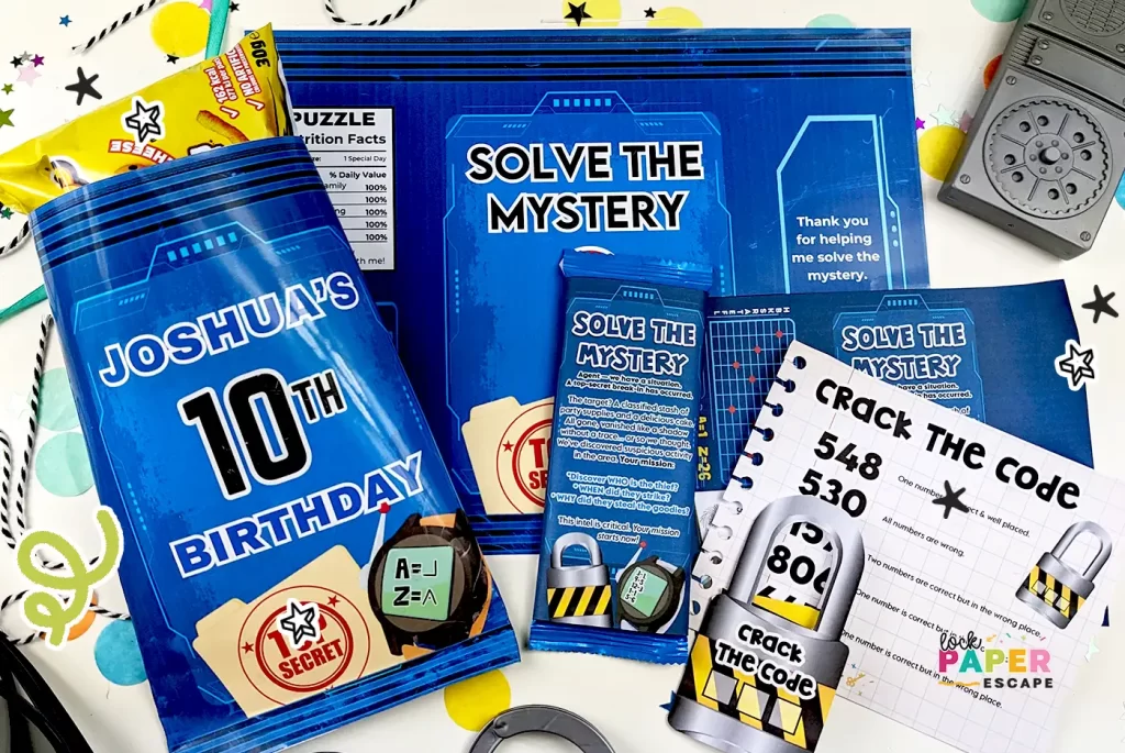 Here is an idea I think you will love for an escape room. Turn the party bag itself into a puzzle. Instead of just handing out the treats at the end, the kids have to solve a clue to open their bag and get to the treasure inside. It’s simple, but it makes the whole thing feel like the adventure continues at home.