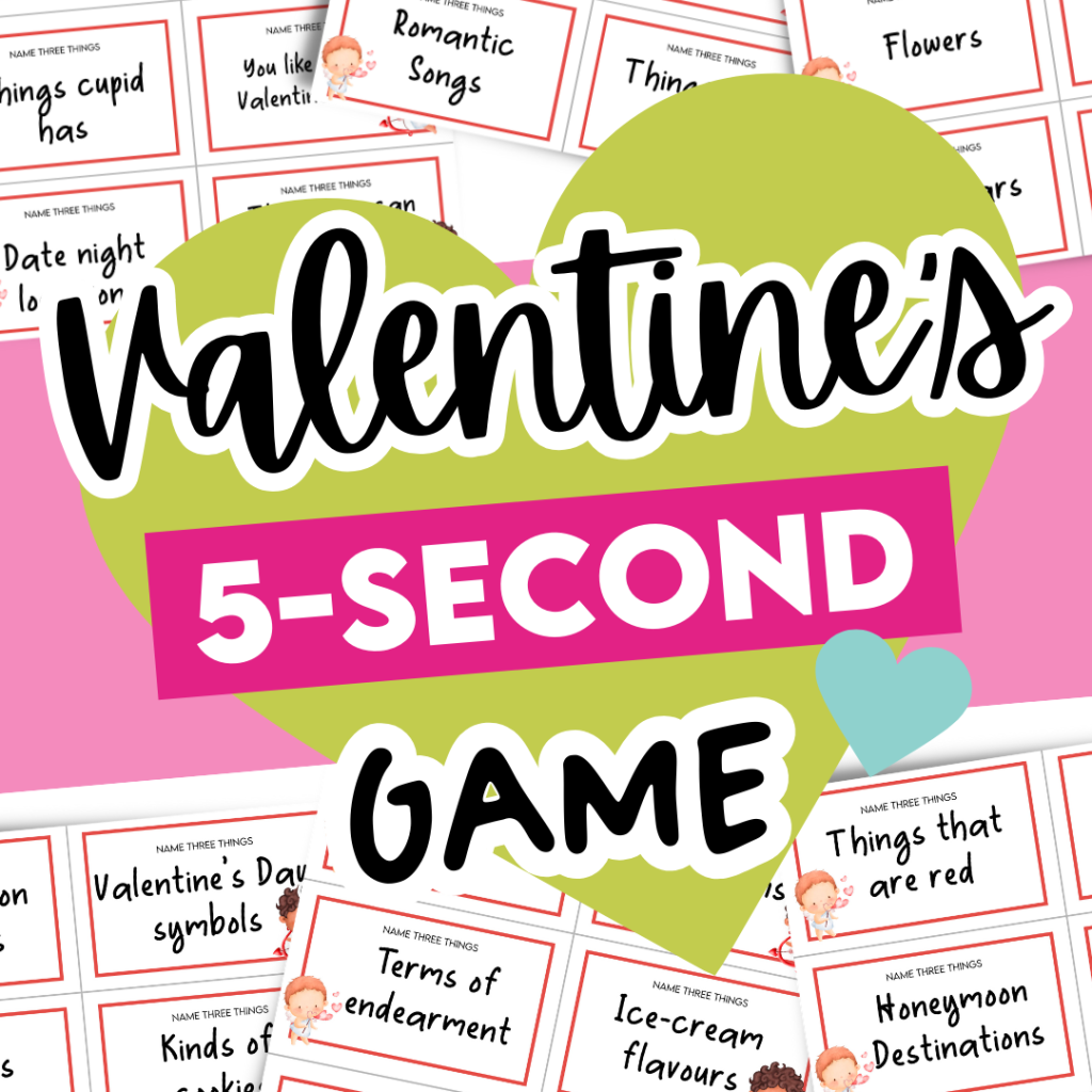 This Valentine’s game is great for parties, family gatherings, fun brain break activities and seasonal classroom shenanigans. They require speed and sharp thinking, guaranteeing some hilarious answers!
