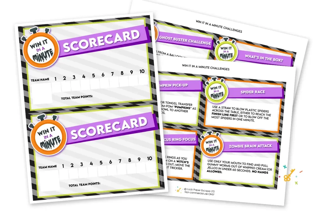 Download the free printable win it in a minute game pack (with scorecard and instructions!) to make set-up stress-free. Then all that’s left is to gather your supplies, set the timer, and let the fun begin.