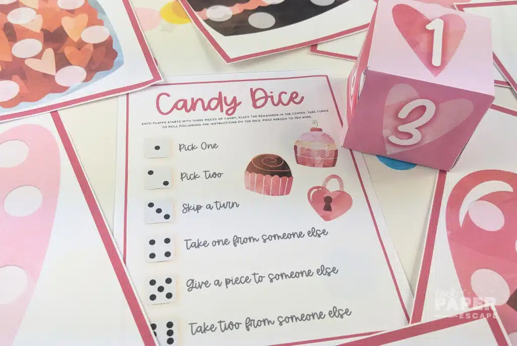 What’s Included in the Valentine’s Candy Dice Game